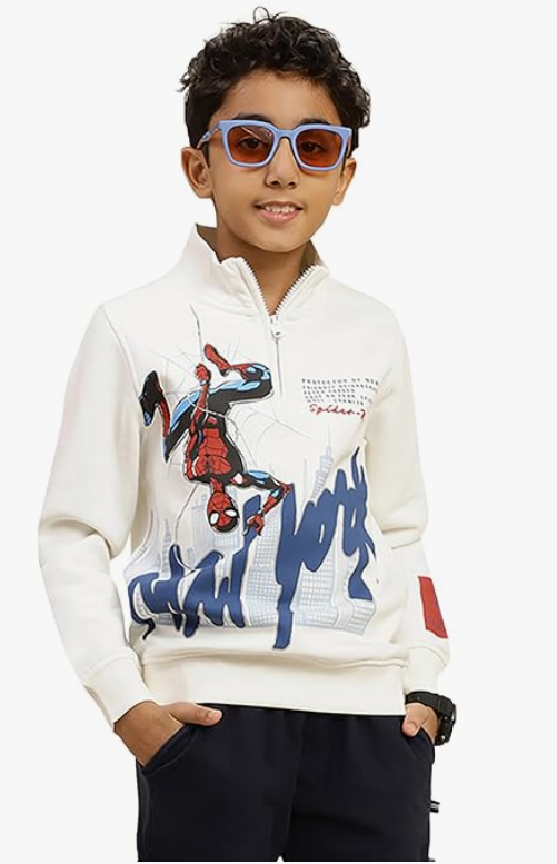 Crafted from a soft and durable cotton-blend fabric, this sweatshirt is designed to withstand everyday adventures. The classic fit and elasticated cuffs provide a cozy feel, while the unique graphic elements ensure your little hero looks stylish whether they are heading to a playdate or exploring the city.