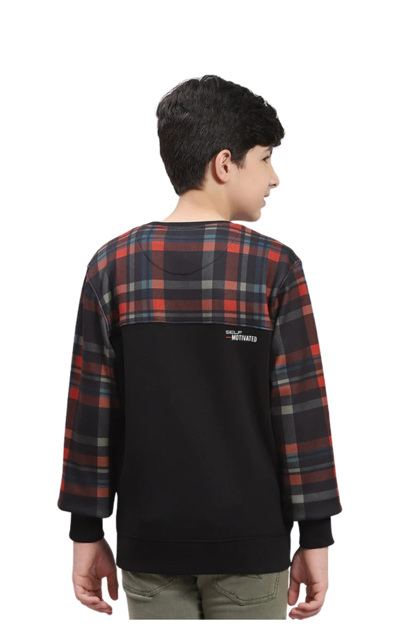 Upgrade his seasonal style with the Boys’ “Self Motivated” Plaid-Paneled Sweatshirt, a piece that effortlessly blends traditional patterns with modern urban design. This isn’t your average pullover; it features a striking contrast between a sleek black base and rich tartan plaid across the shoulders and sleeves, making it a standout addition to any young wardrobe.