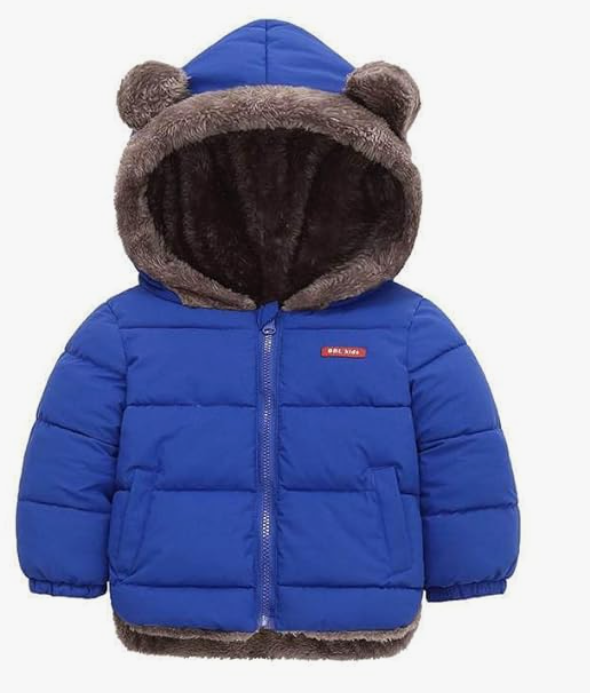 Keep your little one cozy and cute throughout the coldest months with our Toddler Bear-Ear Fleece-Lined Puffer Jacket. This vibrant blue winter coat combines playful aesthetics with practical weather protection, making it a must-have for your child’s winter wardrobe.